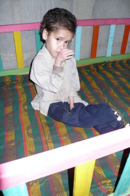 Dagoberto, 12 Jahre alt, lebt mit seiner Mutter und seinen fünf Geschwistern in San Juan de Somoto. Die Familie besitzt nur ein kleines Stück Land und pachtet deshalb zum Anbau von Grundnahrungsmitteln ein weiteres Feld. Dagoberto ist aufgrund einer cerebralen Schädigung geistig behindert und motorisch stark eingeschränkt. Bei unserem letzten Besuch 2006 konnte er noch nicht sprechen und auch nicht selbst essen, was zum Teil seine deutliche Unterernährung erklärte. Die Hütte war stark verwahrlost, eine Kochstelle in schlechtem Zustand und Dagoberto hatte einen Schlafplatz, der nur aus einem Bettrahmen mit abgespannten Schnüren und Plastiksäcken bestand.